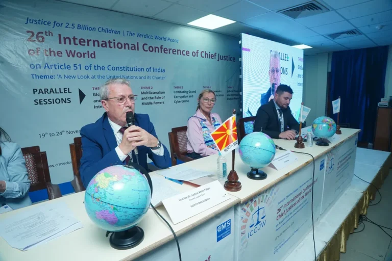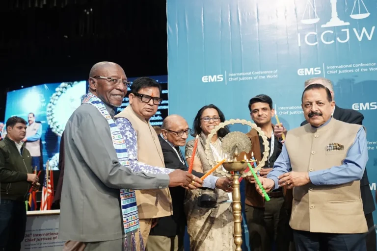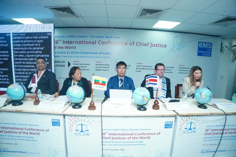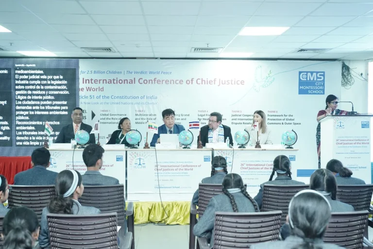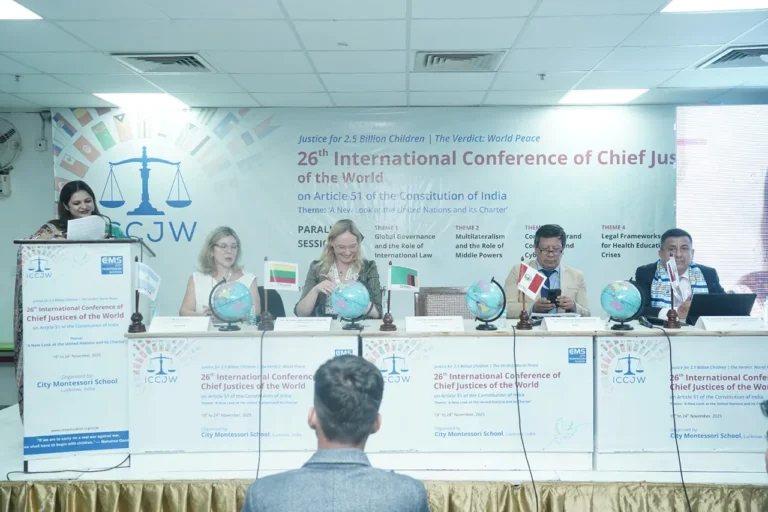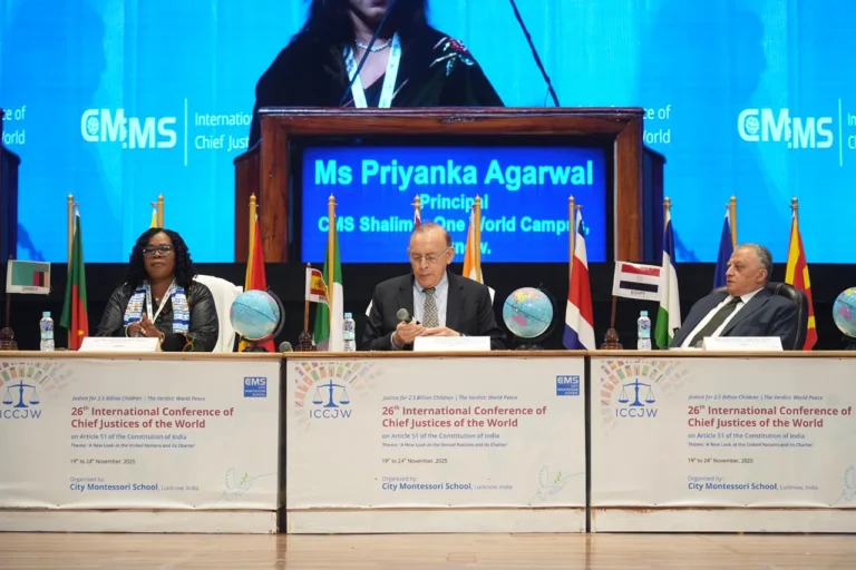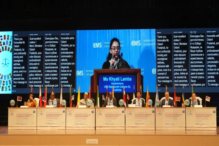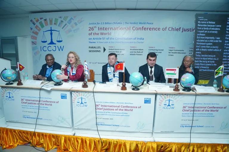Day 4 of the 26th International Conference of Chief Justices of the World was dedicated to space, science and technology. Chief Guest Shri Jitendra Singh, Minister of State (Independent Charge) for Science & Technology, urged the eminent dignitaries from 51 countries to unite behind a shared vision to solve global challenges, particularly in emerging domains such as oceans, cyberspace and outer space. Distinguished guest and Indian Astronaut Shri Shubhanshu Shukla echoed the call for collective responsibility, reminding the world that the Earth is humanity’s only home and must be safeguarded with ethical leadership and scientific consciousness. Across parallel sessions, eminent speakers from South Sudan, Antigua & Barbuda, Kyrgyzstan, Haiti, Angola, the USA, Suriname, Bulgaria, Sweden and India deliberated on global governance, cybercrime, climate and health crises, judicial cooperation, and UN Charter reform, strengthening the collective resolve to secure a safe and peaceful future for 2.5 billion children worldwide. In the evening, the CMS management and the esteemed dignitaries visited the Chief Minister’s Residence for a dinner hosted by Shri Yogi Adityanath, Hon’ble Chief Minister of Uttar Pradesh.