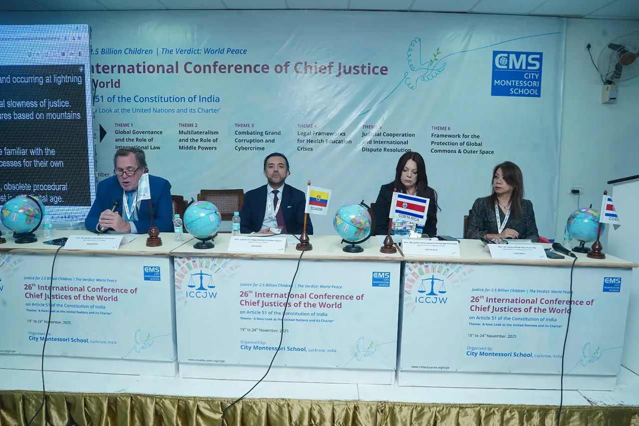Day 4 of the 26th International Conference of Chief Justices of the World was dedicated to space, science and technology. Chief Guest Shri Jitendra Singh, Minister of State (Independent Charge) for Science & Technology, urged the eminent dignitaries from 51 countries to unite behind a shared vision to solve global challenges, particularly in emerging domains such as oceans, cyberspace and outer space. Distinguished guest and Indian Astronaut Shri Shubhanshu Shukla echoed the call for collective responsibility, reminding the world that the Earth is humanity’s only home and must be safeguarded with ethical leadership and scientific consciousness. Across parallel sessions, eminent speakers from South Sudan, Antigua & Barbuda, Kyrgyzstan, Haiti, Angola, the USA, Suriname, Bulgaria, Sweden and India deliberated on global governance, cybercrime, climate and health crises, judicial cooperation, and UN Charter reform, strengthening the collective resolve to secure a safe and peaceful future for 2.5 billion children worldwide. In the evening, the CMS management and the esteemed dignitaries visited the Chief Minister’s Residence for a dinner hosted by Shri Yogi Adityanath, Hon’ble Chief Minister of Uttar Pradesh.