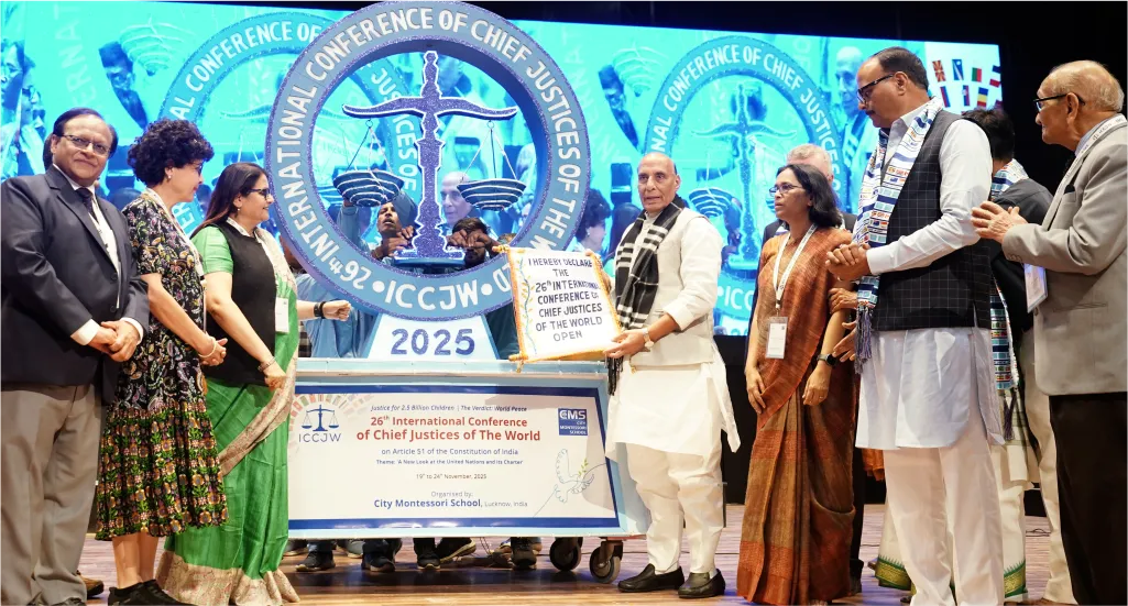 The third day of the 26th International Conference of Chief Justices of the World (ICCJW) marked a historic moment for global governance dialogue, as distinguished dignitaries and jurists gathered in Lucknow to reflect on the future of world peace, international law and the reform of multilateral institutions. With the participation of over 156 Chief Justices, Judges, Presidents, Prime Ministers, Speakers of Parliament and eminent dignitaries from 51 countries, the CMS Kanpur Road Auditorium transformed into a veritable epicentre of intellectual leadership and global collaboration.