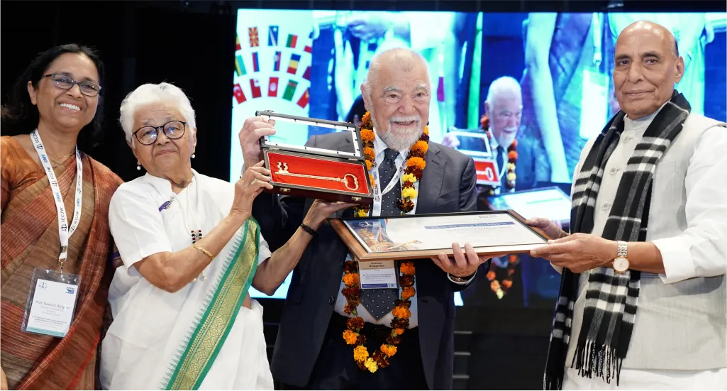 Amidst resounding applause, Shri Rajnath Singh and CMS Manager Prof. Geeta Gandhi Kingdon honoured eminent world leaders with the prestigious ICCJW awards. The celebrated honourees included: