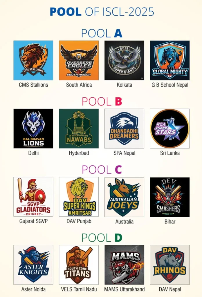 The 16 teams were divided into four competitive pools, ensuring diversity, balance, and thrilling encounters from the very first match—beginning with the host team, CMS Stallions, facing Overberg Eagles (South Africa).